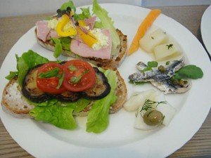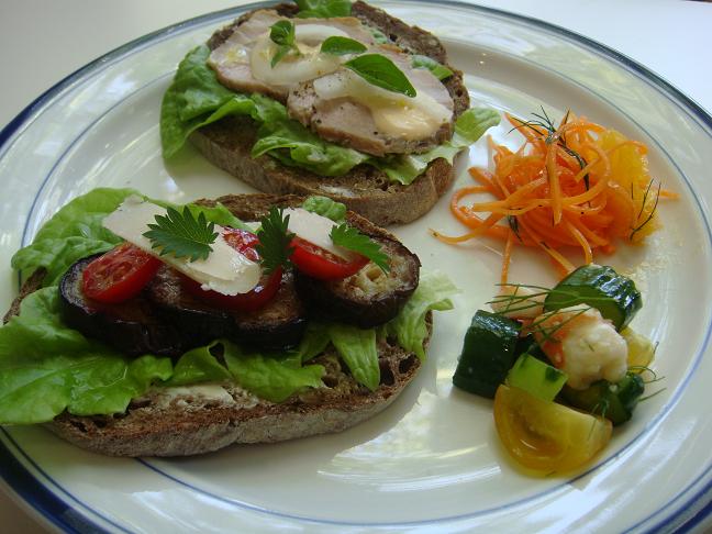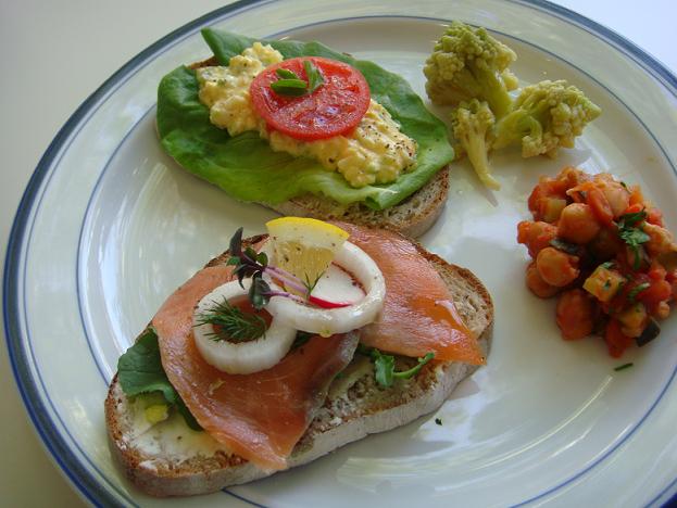 : サラダ菜・卵サラダ・トマト・マージョラム