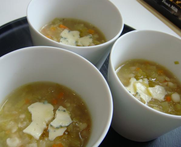 スープ : キャベツ・セロリなどの野菜 ブルーチーズをトッピング