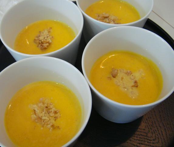 スープ : カボチャとニンジンのスープ クルミ(トッピング)