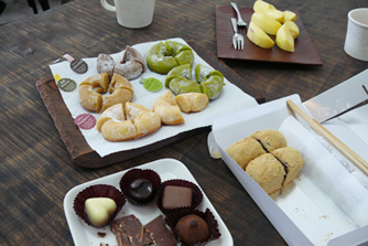 201301/20 CATEGORY:share-gaki 便り ありがとうございました! 今年初めのカフェに起こしいただきまして、ありがとうございました。 初めてのお客さまも、近くまで着ながらも迷いながら、なんとか辿りついたそうで 今後の目印は、路駐の車が連なっているのを看板代わりに・・・なんて半分冗談で考えております。 また、ランチのご予約をいただいていたのに フォームから自動返信メールが飛んでなかったようで、ご心配掛けてしまいました。 このことを考慮して、メールフォーム送信後に表示されるページに 注釈を書いておこうと思いました。 さて、カフェの方、スタッフ持ち寄りやら、お客さまからのお土産などを分かち合いながら いつものように、賑やかで(スタッフのおしゃべり?)、ゆるやかな時間を お客さまとともに楽しませていただきました。 お花のアレンジ教室と同時開催と言うこともあって 中西さんのインテリアとともに、異空間を味わっていただけたかもしれませんね。 月に一度の、気ままなカフェですが、今後ともよろしくお願いいたします。 帰宅してから写真を取り出してみたら、ほとんどピンボケだったのと ランチの写真を、すっかり撮り忘れてしまいました。 心ここにあらず・・・だったようです。 ピンボケ写真の中から、拾い集めました お客様から、掛川の「振袖餅」というのをいただきました ランチタイムを終え、ご来店もひと段落したところで、スタッフカフェ? 差し入れやお土産、持ち寄りでのブレイクさせてもらいました
