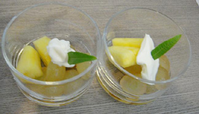 デザート ブドウ・パイナップルにハチミツヨーグルトかけ