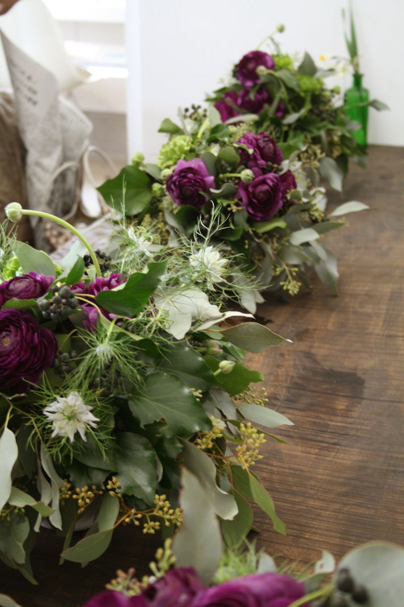 201302/18 CATEGORY:kumin 便り ラナンキュラス パープル・ブラック・グリーン 三種のラナンキュラスとニゲラ。 葉物はユーカリポポラスとヘデラベリーです。 ラウンドアレンジメントを作りました。 葉物の大切さ、お花を挿す位置などをポイントにレッスンしていきました。 お疲れ様でした^^ kumin PR