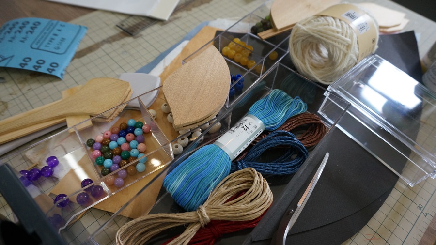 201507/01 CATEGORY:お知らせ 7月の「カフェ創作室」 今年は冷夏なんでしょうか。 梅雨真っ只中の雨の日は、肌寒いくらいです。 でも、ひとたび太陽が顔を出せば、ムムッとした蒸し暑さが・・・ 体調管理にお気を付けてくださいね。 7月のカフェ開催のお知らせです。 また、「マイうちわのワークショップ」報告が途中になってしまいました。 この下の方に、写真を置きましたので、どうぞご覧ください。 2015年7月19日(日)開催 AM11:00~PM4:00(Last order 3:30PM) (※ 駐車場はカフェ手前の延長道路のみとなります) ハーブランチ(10食限定)のご予約は メールフォームにてどうぞ。(7月15日締切) スマートフォンから申し込みいただく場合 自動返信メールが届かないことがありますので こちら ⇒ sharegaki@gmail.com からお申込みくださいませ。 ≪ MENU ≫ ハーブティ及び珈琲 300円 ケーキ 300円 ハーブランチプレート(10食限定) 1,500円(予約要) (ディッシュ・スープ・デザート+飲み物・・・ハーブティ or 珈琲) 「マイうちわのワークショップ」には、スタッフを含め11名の参加でスタート パーツと見本です 仕上げのパーツ まずは柄の形づくり カッターナイフなどで縁を面取り さらにサンドペーパーで仕上げを(粗目と細目の2種類) この作業で、美しいカーブがつくられていきます 本体の形を調え、柄をセットして、本体の縁にテープ状の和紙を貼っての仕上げです 柄にドリルで穴を開け、それぞれが選んだ紐と飾り玉の根付けを付けて完成~ 扇子と団扇の真ん中の、上品な「マイうちわ」に、みなさん満足顔! さぁ、お待ちかねのティータイム 焼き菓子の他に、ハーブティーか珈琲の選択だったのを ハーブティー・珈琲・ごとう製茶さんの無農薬「豊橋紅茶」のどれもどうぞの大判ふるまい!? 楽しかったですね~ たまには、なにごとかを企画していきたいなぁと思った一日でした ワークショップに参加できなかった方や。「モダン団扇」をという方へ。 中西康之さん作のモダン団扇を、「カフェ創作室」で販売予定です。 お越しの際には、ぜひご覧になってくださいね。 PR