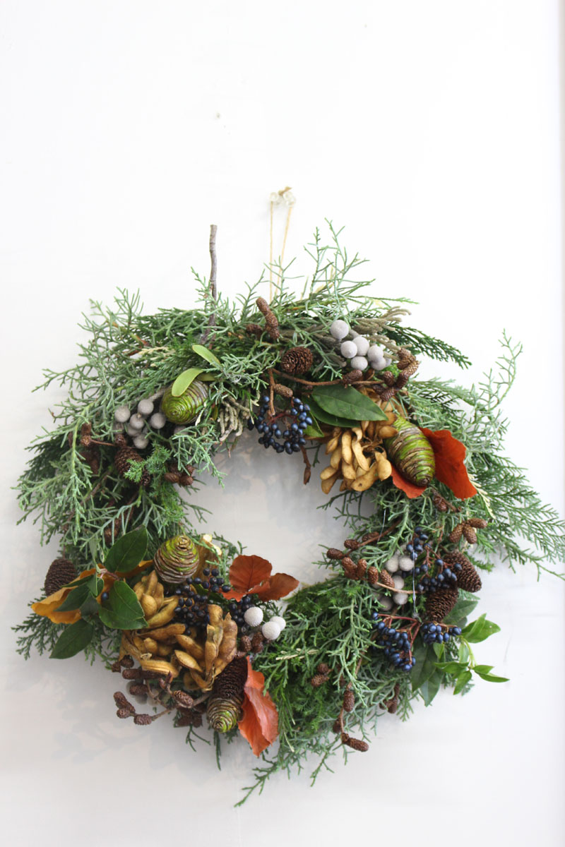 201511/16 CATEGORY:kumin 便り クリスマスリース 11月のレッスンは、毎年恒例のクリスマスリース作りでした。 石化豆、ビバーナムティナス、ヤシャブシ、シルバーブローニア、 プラティスター、ヒバ、ファーガス(西洋ブナ)などを使って お疲れ様でした^^ kumin PR